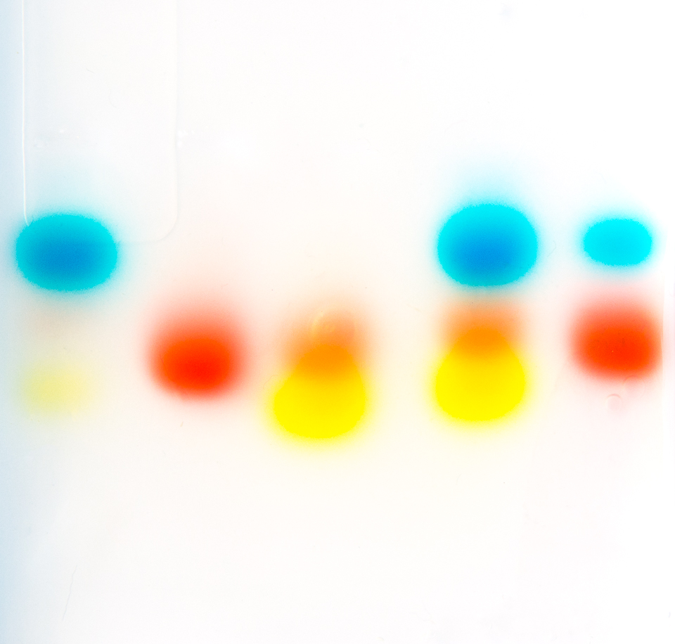 Colorantes que simulan fragmentos de ADN. Muestras coloreadas.