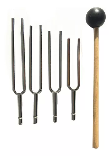 Set de 4 diapasones para comparar frecuencias y resonancia. Ideal para experimentos de acústica en laboratorio escolar.
