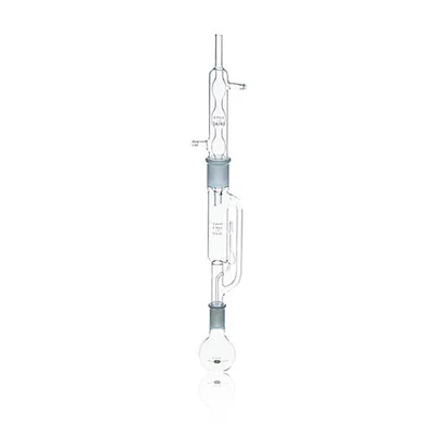 Extractor Soxhlet 100 mL con balón 250 mL y refrigerante. Conexiones 24/40 y 45/40. Equipo para extracción en Química educativa, bajo supervisión docente.