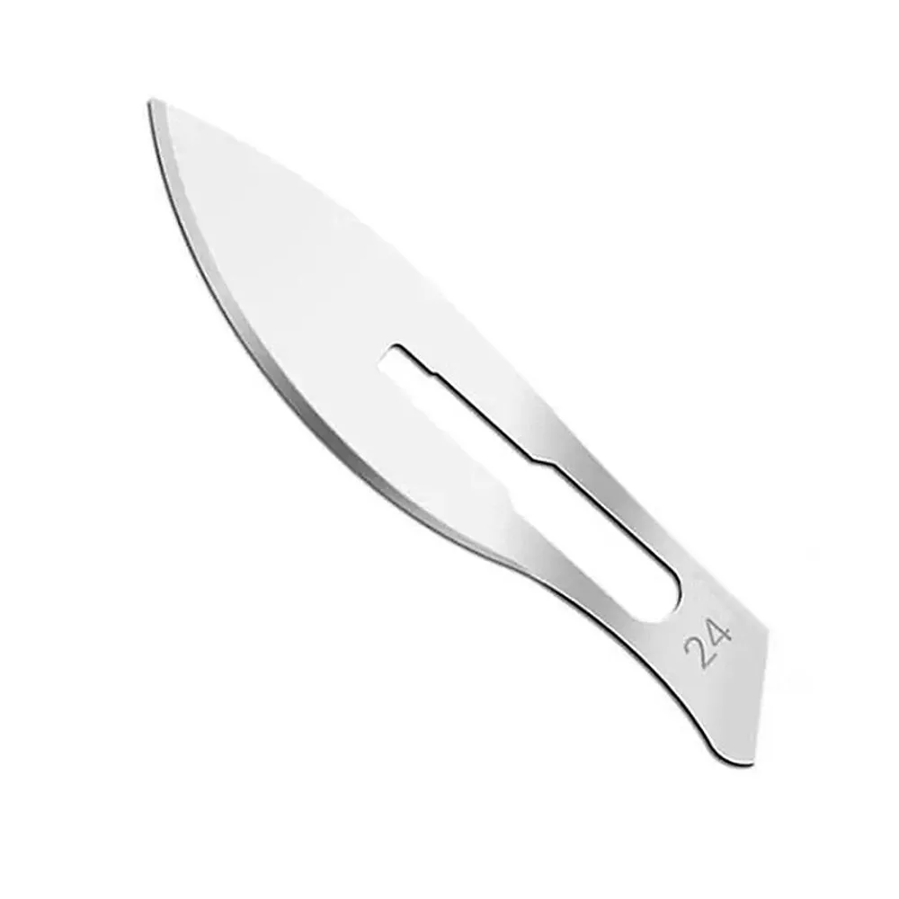 Hojas de bisturí N°24 (caja 100) para prácticas demostrativas. Uso educativo bajo supervisión en laboratorios escolares de ciencias.
