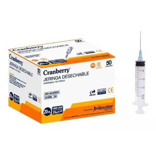 Jeringas 20 cc (50 unid.) con agujas 21G×1½”. Para dosificación y prácticas controladas en ciencias escolares, bajo supervisión docente.