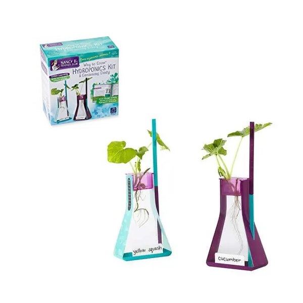 Kit de hidroponía para experimentos de cultivo sin suelo. Integra Biología y Ciencias Ambientales en laboratorio y aula escolar.