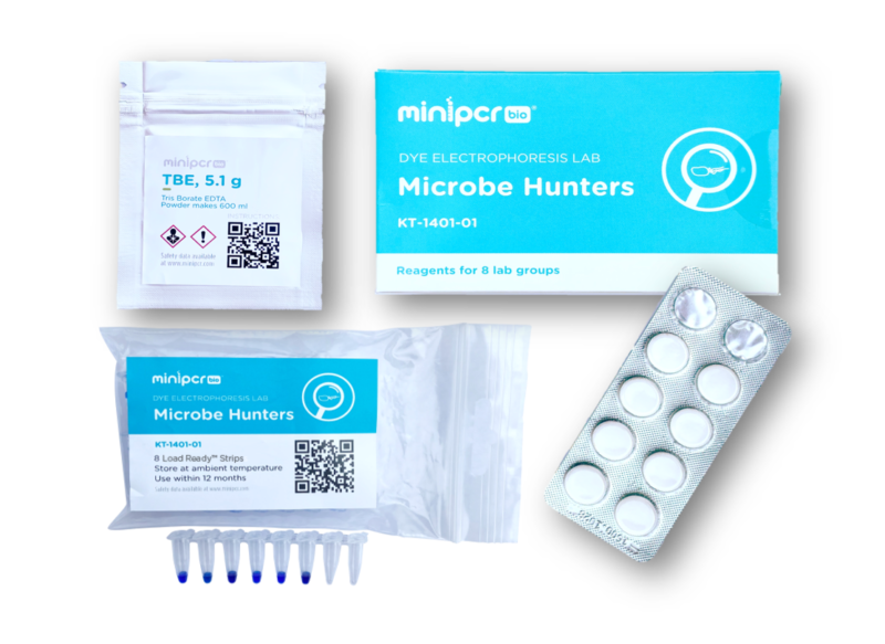 Con el kit Cazadores de Microbios, tus estudiantes se convierten en científicos que utilizan la electroforesis en gel para investigar patrones moleculares inspirados en microorganismos. Esta actividad educativa introduce los principios de separación molecular de forma práctica, sin necesidad de ADN real ni tinciones complicadas, gracias a colorantes inocuos que se visualizan directamente al correr el gel.