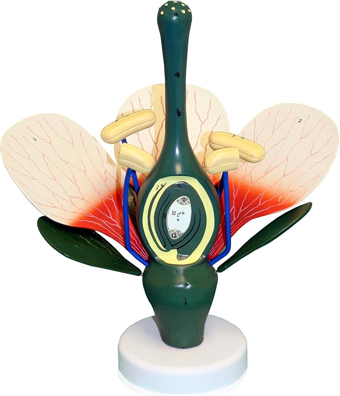 Modelo de flor ampliada para estudiar partes y reproducción vegetal. Útil en Biología y Ciencias Naturales en aula escolar.