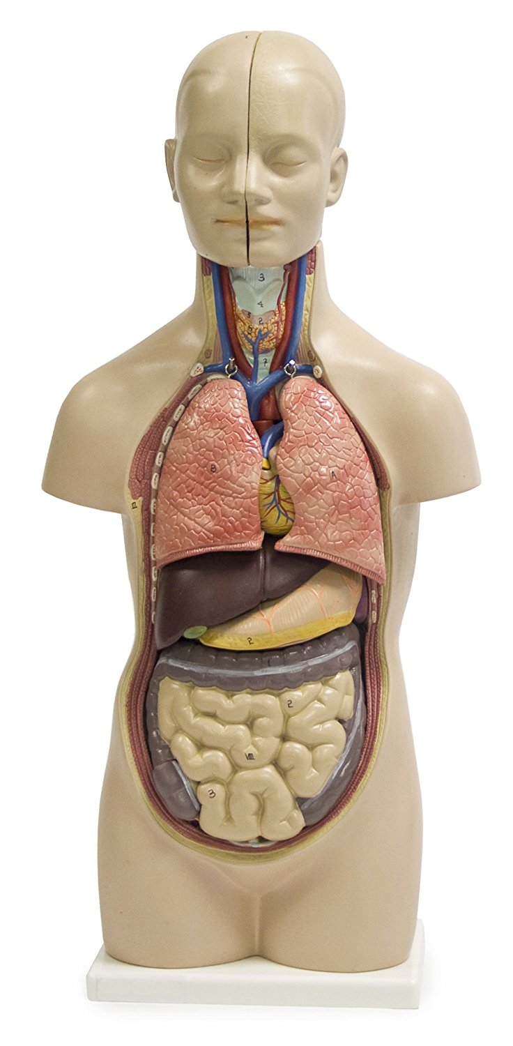 Torso humano con órganos extraíbles, ideal para introducción a la anatomía.