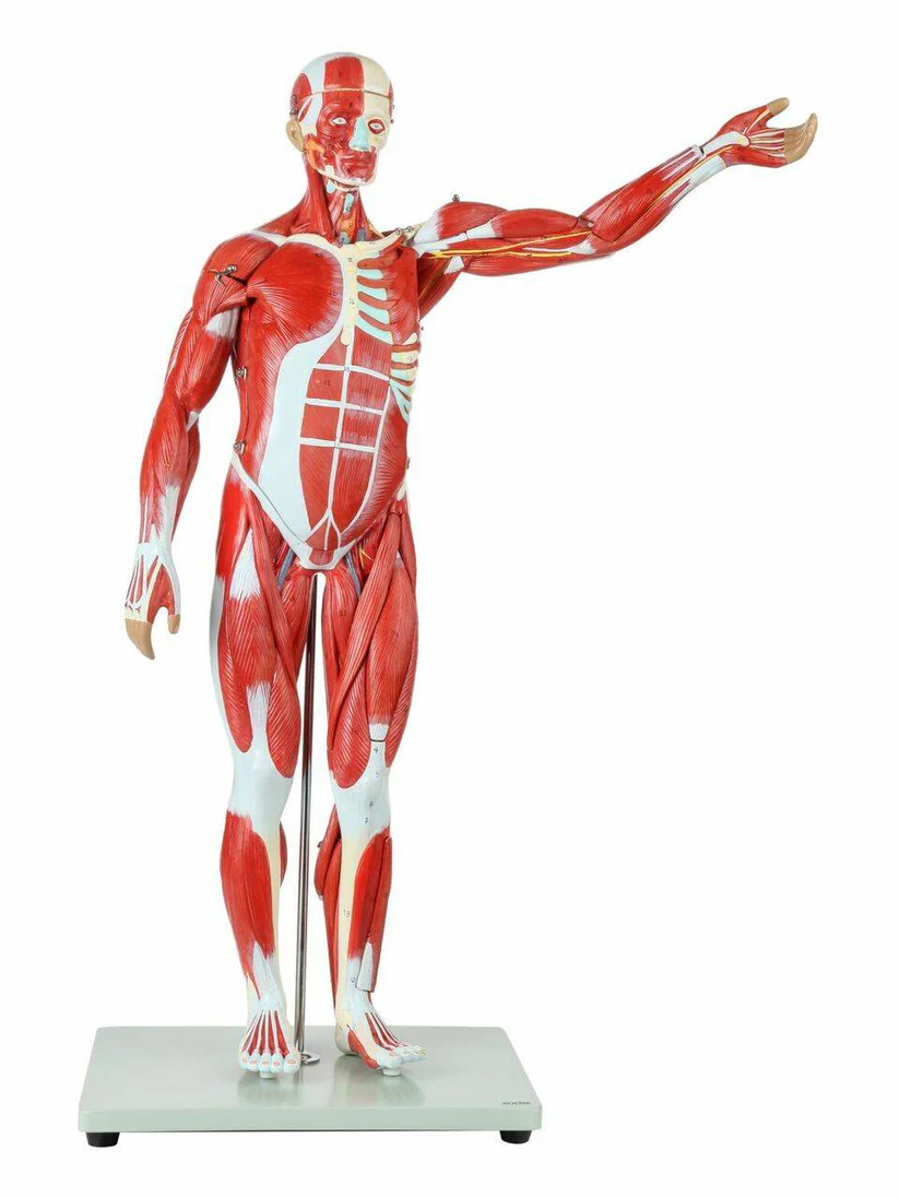 Modelo de músculos humanos 80 cm, 27 piezas desmontables. Permite estudiar anatomía muscular y relaciones en ciencias de la salud escolar.