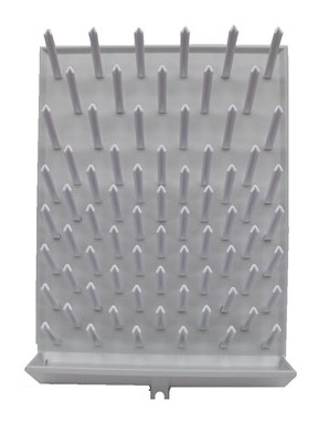 Panel plástico con espigas para escurrir y secar tubos y cristalería de laboratorio.