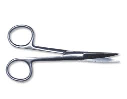 Tijera de disección recta 11,5 cm para cortes precisos en anatomía y biología. Uso educativo en laboratorio escolar.